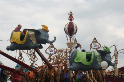 How insane was it? You know the Dumbo ride, where you ride in the elephants and go up and down for 30 seconds, just like you can on a carnival ride? The wait for that was 80 minutes long. Yes, I said 80, as in an hour and 20 minutes. Can you say, “not only no, but hell no?” Needless to say, there was a Munchkin meltdown because we told her we weren’t standing in that line – she flipped over the half hour we were in the Pirates line, there’s no way she’d do 80 minutes. (And we promised her no more crazy-long lines.)
