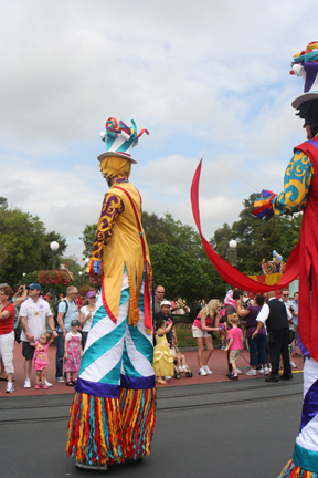 It was time to go after that, but not until we got stopped by the mid-evening character parade and so those freaky stilts guys could scare the crap out of me again.